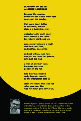 This poem by Andres Rojas is one beautiful example of what you’ll see at POP. For the others, go to the Maker Space at the downtown Jacksonville Public Library, starting October 2nd.