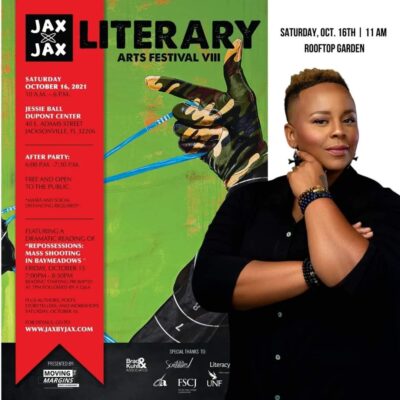 We LOVE what Taryn “Love Reigns” Wharwood did via graphic design to make the JaxbyJax poster uniquely her own, and we predict you’ll LOVE hearing her read poetry on October 16th at the Jessie Ball DuPont Center in Jacksonville.